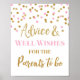 Advice and well wishes for the parents to be sign for baby shower in light pink and gold confetti pattern. Please note glitter effect is photographic effect only.