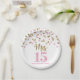 Quinceanera birthday party custom plates with light pink and gold glitter confetti pattern.
