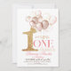 Pink Gold Crown Princess balloons 1st Birthday Invitation