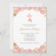 Pink Gold Floral Cross Minimalist Baptism Invitation