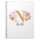 Pink Gold Floral Monogram Letter N Notebook