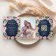 Pink Gold Floral Photo QR Code Navy Blue Wedding Tri-Fold Invitation