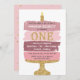 Pink & Gold Glitter Cake 1st Birthday Invitations