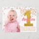 Pink Gold Glitter Confetti First Birthday Photo Invitation