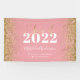 pink gold glitter script class of graduation party banner design. Modern gold and glitter effect and on trend bold typography and script text. Part of a collection.