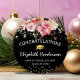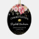 Elegant graduation ornament featuring a trendy black background, pink watercolor florals, a graduate cap, gold glitter, and a congratulations template that is easy to personalize.