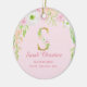 Pink & Gold Letter "S" Floral Monogram Birth Stats Ceramic Ornament