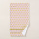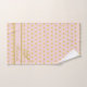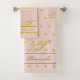 A pink and gold polka dot monogrammed name and initial towel set for a chic and trendy bathroom decor.