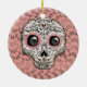 Pink & Gold Sugar Skull & Cute Whimsical Hearts Ceramic Ornament