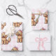 This adorable wrapping paper features a repeating pattern of fluffy brown Goldendoodles wearing sweet pink polka-dot bows. Set against a soft blush gingham background, the design brings a playful yet charming feel to any gift. Perfect for dog lovers, birthdays, baby showers, or just to add a touch of cuteness to your presents, this paper combines whimsy and style in one delightful package.