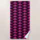 A super cute beach towel for the colorful Goths out there. This shows a pattern of romantic winged skulls in hot pink on a black background.
