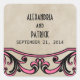 Elegant and chic Gothic Swirls Wedding Stickers featuring a vintage faux textured beige background and swirl flourish borders in magenta. This antique looking design is perfect for a gothic or vintage wedding. Easy to customize, simply add your wedding details in the text fields provided. Click "Customize It" to find more personalization options.