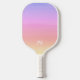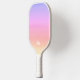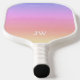 This pink and orange pastel pickleball paddle has a gradient ombre design with white trim. The colors evoke a soft sunset. The monogram initials are in white also and you can personalize the paddle by changing them.