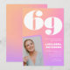 Yes, you can print on the back of your invitation for free! Most designs already have a corresponding design on the back that can be personalized using the Design Tool and going to Layers. This is a great way to communicate more information or further personalize your Pink Gradient Retro Photo 69th Birthday Invitation. The option is really up to you.