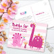 “Thanks for stomping by”. A fun, whimsical, playful visual of two cute, bold, kawaii, pink brontosauruses and fun, handwritten typography over a light pink and white striped background, helps express your appreciation. A cool type treatment of the work “roar” and your custom note are on the back. Say thank you to your guests with these adorable, modern, simple dinosaur girl custom preschool and/or kindergarten thank you postcards. On the front, personalize with her name. Type a custom note on the back or leave blank for your handwritten message. Also add your return address. Matching invites, banners, yard signs, stickers, and other goodies are also available in this special and fun collection. Guaranteed to add a stylish touch to your correspondence!