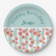 Pink Grapefruit Pattern on Green Stripes Birthday Paper Plates