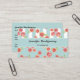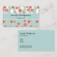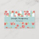 Business cards featuring a digital image with a repeating pattern of pink grapefruits created with watercolors, set on a pastel green and white striped pattern. A green