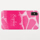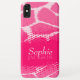 Bright animal patterned iphone case in bold hot pink hues. Personalise this item with your full name. This example currently reads: Sophie Jackson. This original pattern by Sarah Trett, is based on the patterning found on a giraffe with a halftone moiré dot gain pattern overlay.