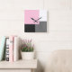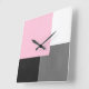 Pink Gray Black and White Geometric Block Square Wall Clock