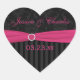 This dramatic and elegant 1.5" heart shaped black and charcoal grey damask with stripes wedding favor sticker and/or envelope seal has a hot pink PRINTED ribbon and a PRINTED diamond jewel buckle on it that matches the wedding invitation shown below, and is a perfect way to send out a beautifully coordinated invitation, or you can use it to attach to your wedding favors. If you need any other shapes of sticker, or color changes, please email niteowlstudio@gmail.com.