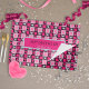 Cute personalized paper placemat design featuring a geometric pattern made of pink, black and gray hearts with your custom text.