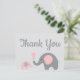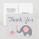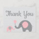 Pink Gray Elephant Baby Shower Thank You Postcard