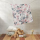 Baby blanket with an elegant pattern made with a watercolor illustration of pink flowers with blue-gray leaves and stems.