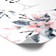 A poster with an elegant pattern made with a watercolor illustration of pink flowers with blue-gray leaves and stems.