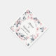 Wedding napkins with an elegant pattern made with a watercolor illustration of pink flowers with blue-gray leaves and stems.