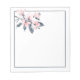 A notepad with a pretty watercolor illustration of pink flowers with gray leaves on a single stem. A modern elegant botanical design.