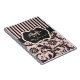 This personalized blush pink, charcoal gray, and ivory floral damask with stripes journal note book has template boxes for you to add your name, monogram, or other text. If you need help customizing this item, please email niteowlstudio@gmail.com for assistance.