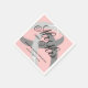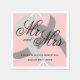Chic Mr and Mrs paper wedding napkins with golden rings. Elegant black script typography design for classy wedding party. Stylish handwritten calligraphy grey text. Customizable colors personalized with name of bride and groom. Cute entwined silver wedding rings. Pink and gray color combination.