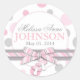 Pink & Gray Polka Dots Announcement Classic Round Sticker
