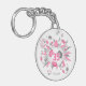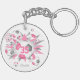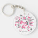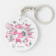 This fun girl's soccer themed keychain features an "explosion" of pink, gray & white soccer balls of varying sizes and gray & pink star shapes - the pink star has a tiny pattern of white polka dots - customize with the athlete's name & jersey number, front & back - the white background color is customizable - by katz_d_zynes