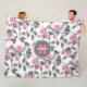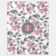 This team colors soccer themed fleece blanket features a pattern of varied size soccer balls turned every which way on a customizable white background - the soccer balls' typically black panels have been recolored pink and gray - customize with soccer player's name and monogram or jersey number - by katz_d_zynes