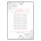 Make your wedding reception beautiful with these table number cards. Designed as a part of our Pink & Gray Elegant Wedding Suite, they feature a simple yet elegant design with Pink & Gray text on a white background with a silver faux foil floral border. These cards include seating assignments so your guests will have an easy time finding the right table.