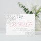 Pink Gray & White Elegant Silver Lace Wedding RSVP Card