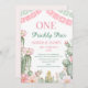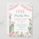 Pink Green Cactus One Prickly Pair 1st Birthday Invitation