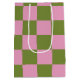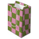 Pink Green Checkered Gingham Pattern Medium Gift Bag