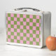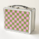 Pink Green Checkered Gingham Pattern Metal Lunch Box