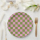 Pink Green Checkered Gingham Pattern Paper Plates