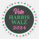 Pink Green Clover 2024 Vote Harris Walz Classic Round Sticker