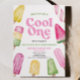 Pink Green Cool One Popsicle 1st Birthday Party Invitation