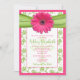 Pink Green Daisy Damask First Communion Invitation