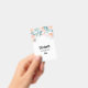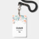 Personalized name badge with an elegant floral border. Flowers and leaves in pink and green.