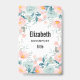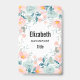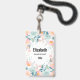 Personalized name badge with an elegant floral border. Flowers and leaves in pink and green.