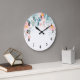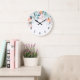 Pink & Green Floral Border Large Clock