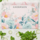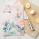 Pink & Green Floral Border Monogram Kitchen Towel