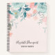 A personalized spiral notebook with an elegant floral border. Flowers and leaves in pink and green.