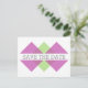 Modern and chic Geometric Triad Save the Date Postcard featuring a stylish triangle design in radiant fuchsia and green. Easy to customize, this simple yet elegant design may be personalized with your wedding details. Click "Customize It" to find more personalization options.